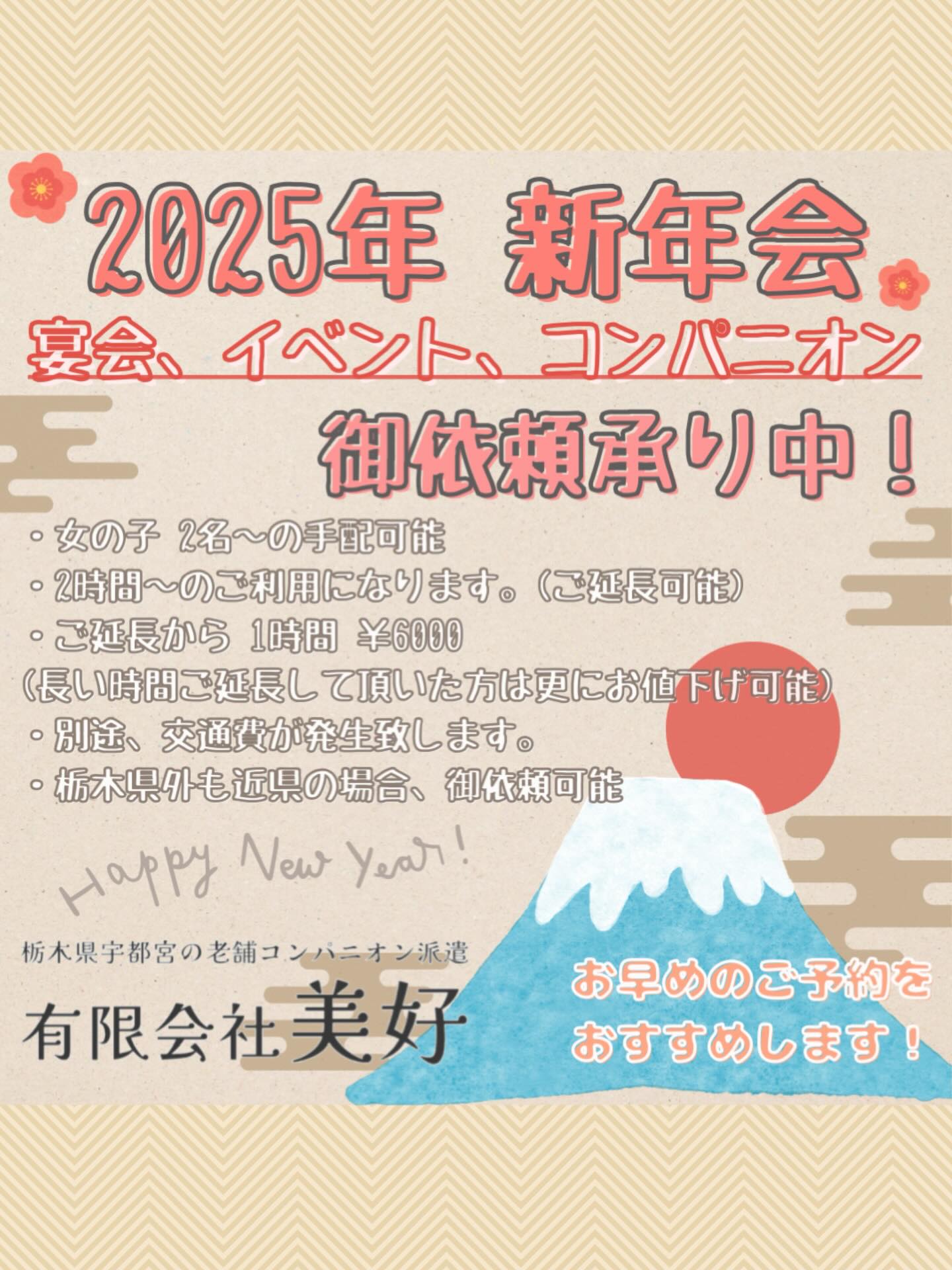 栃木県宇都宮を中心に栃木県全域、茨城県等のご宴会は、ぜひコンパニオン美好にお任せください!
