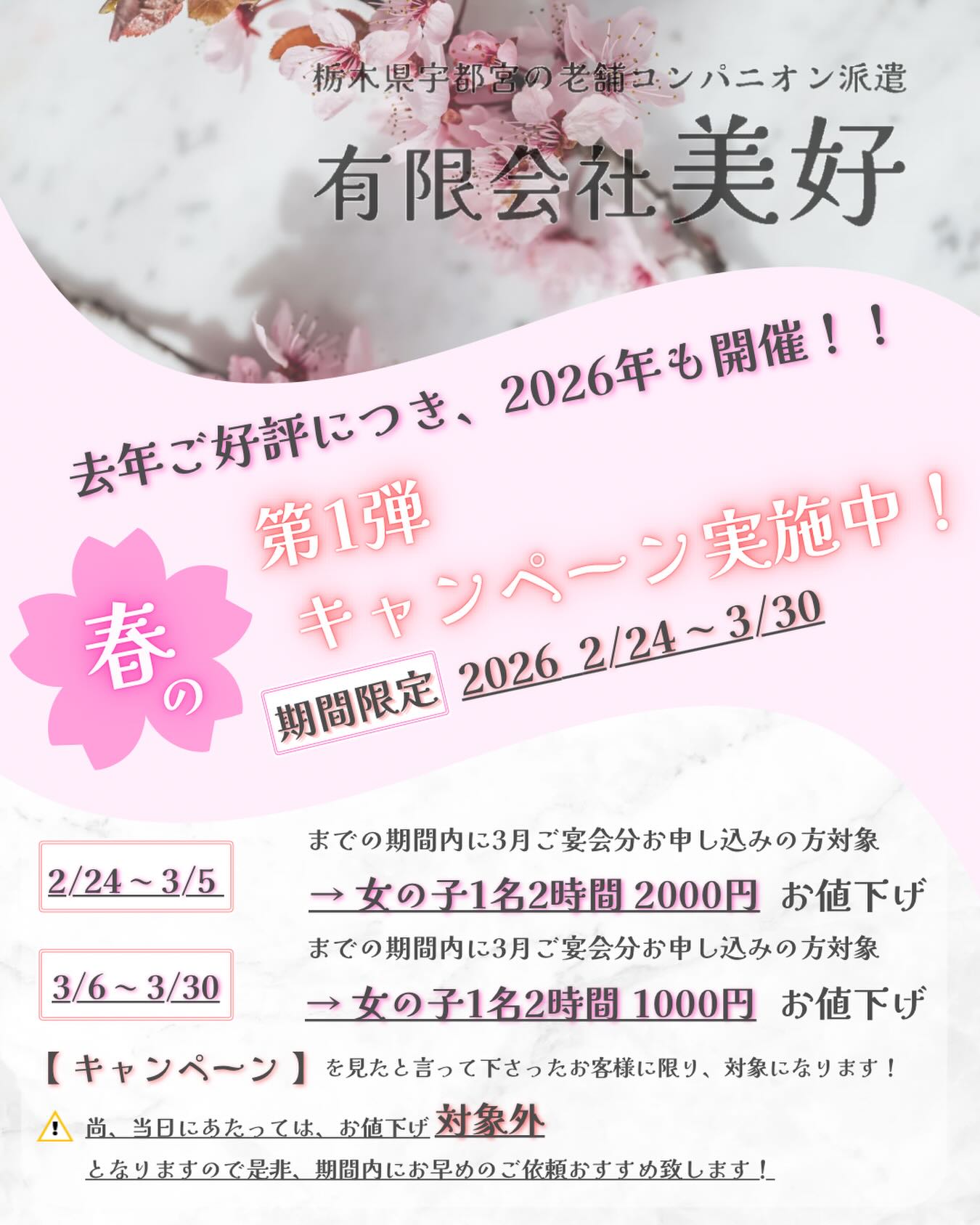 コンパニオン美好は基本2時間から、2名より派遣可能です!